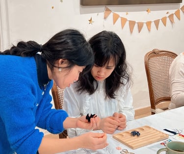 手刺繍、彩色で制作したオリジナルオーナメント。